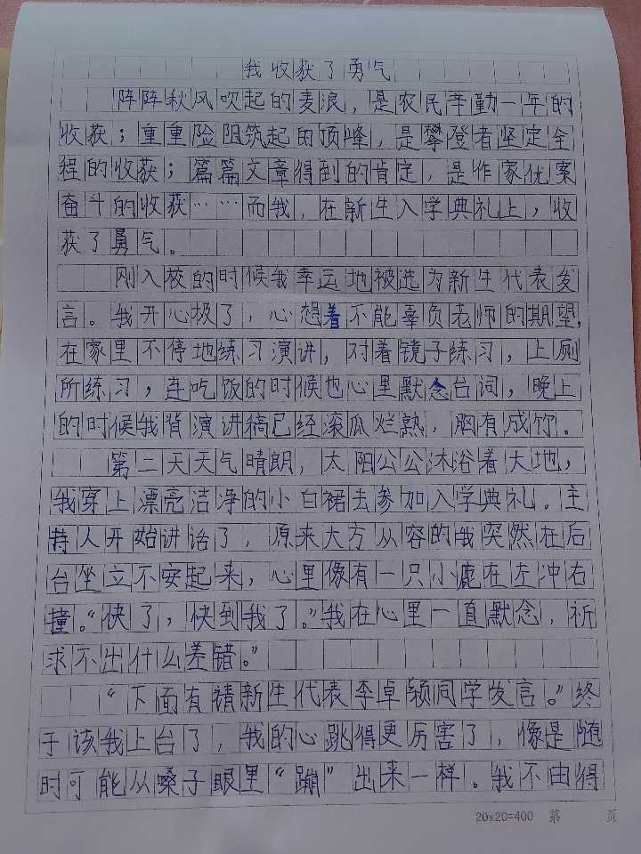 我收获了勇气 热1368 类别:叙事 发表时间:2020-06-05 09:51 已有 1369 次阅读 指导老师:徐改丽 所属学校:金水区艺术小学