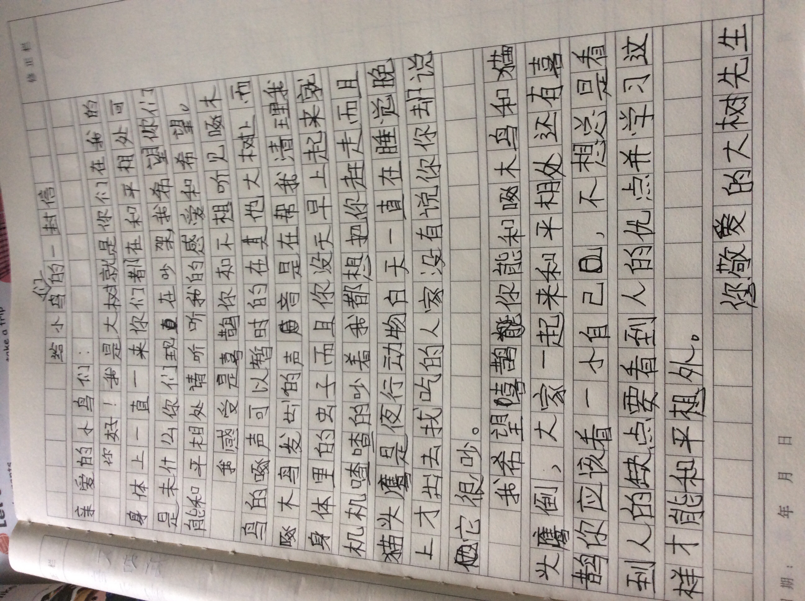 给小鸟的一封信。 热506 类别:状物 发表时间:2020-10-11 15:22 已有 507 次阅读 指导老师:郝彩红 所属学校:新密市金凤路小学
