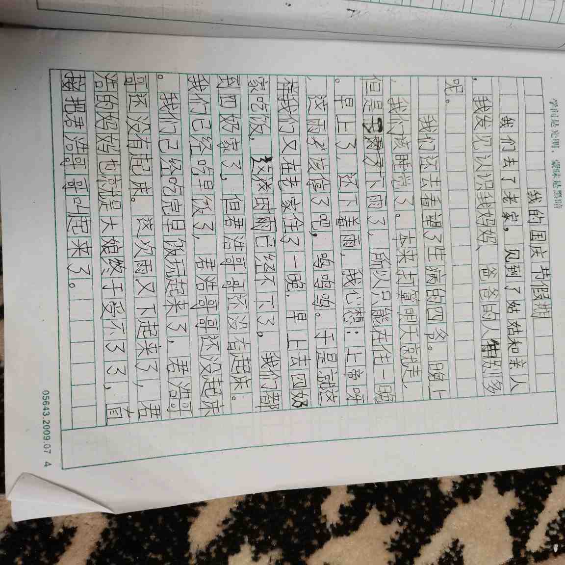 我的国庆节假期 热669 类别:叙事 发表时间:2020-10-07 21:16 已有 668 次阅读 指导老师:赵老师 所属学校:中牟县官渡路小学