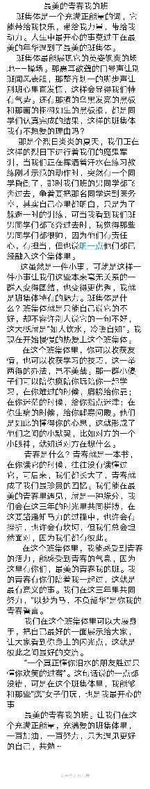 最美的青春我的班 热842 类别:记叙 发表时间:2019-08-06 22:17 已有 843 次阅读 指导老师:王京京 所属学校:登封市第一高级中学