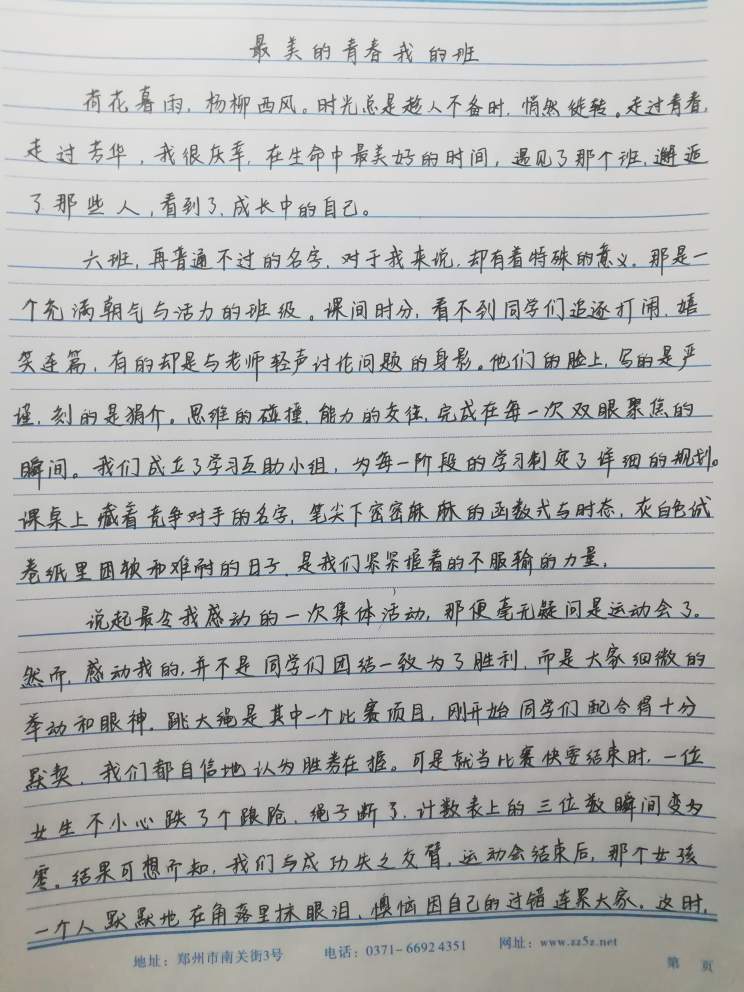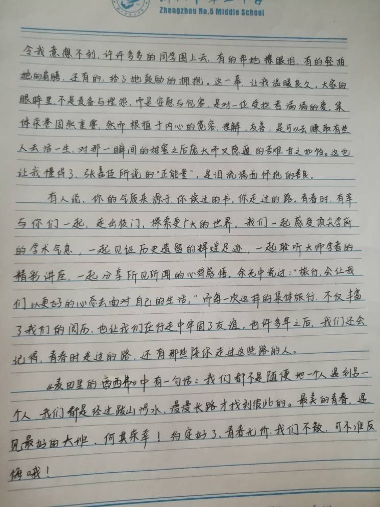 最美的青春我的班 热850 类别:叙事 发表时间:2019-08-09 18:47 已有 851 次阅读 指导老师:梁莉 所属学校:郑州市第五中学