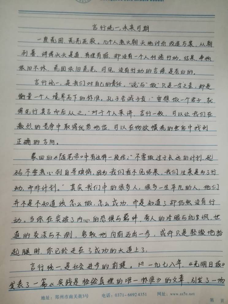言行统一,未来可期 热626 类别:议论 发表时间:2019-08-09 18:49 已有 627 次阅读 指导老师:梁莉 所属学校:郑州市第五中学