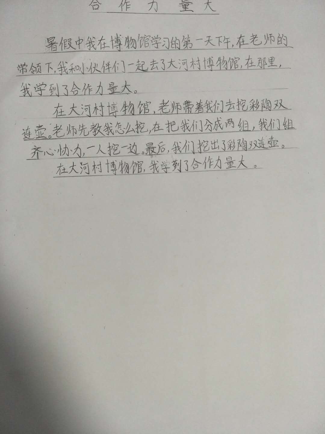 合作力量大 热241 类别:叙事 发表时间:2019-08-28 16:54 已有 242 次阅读 指导老师:孙艳 所属学校:金水区纬一路小学