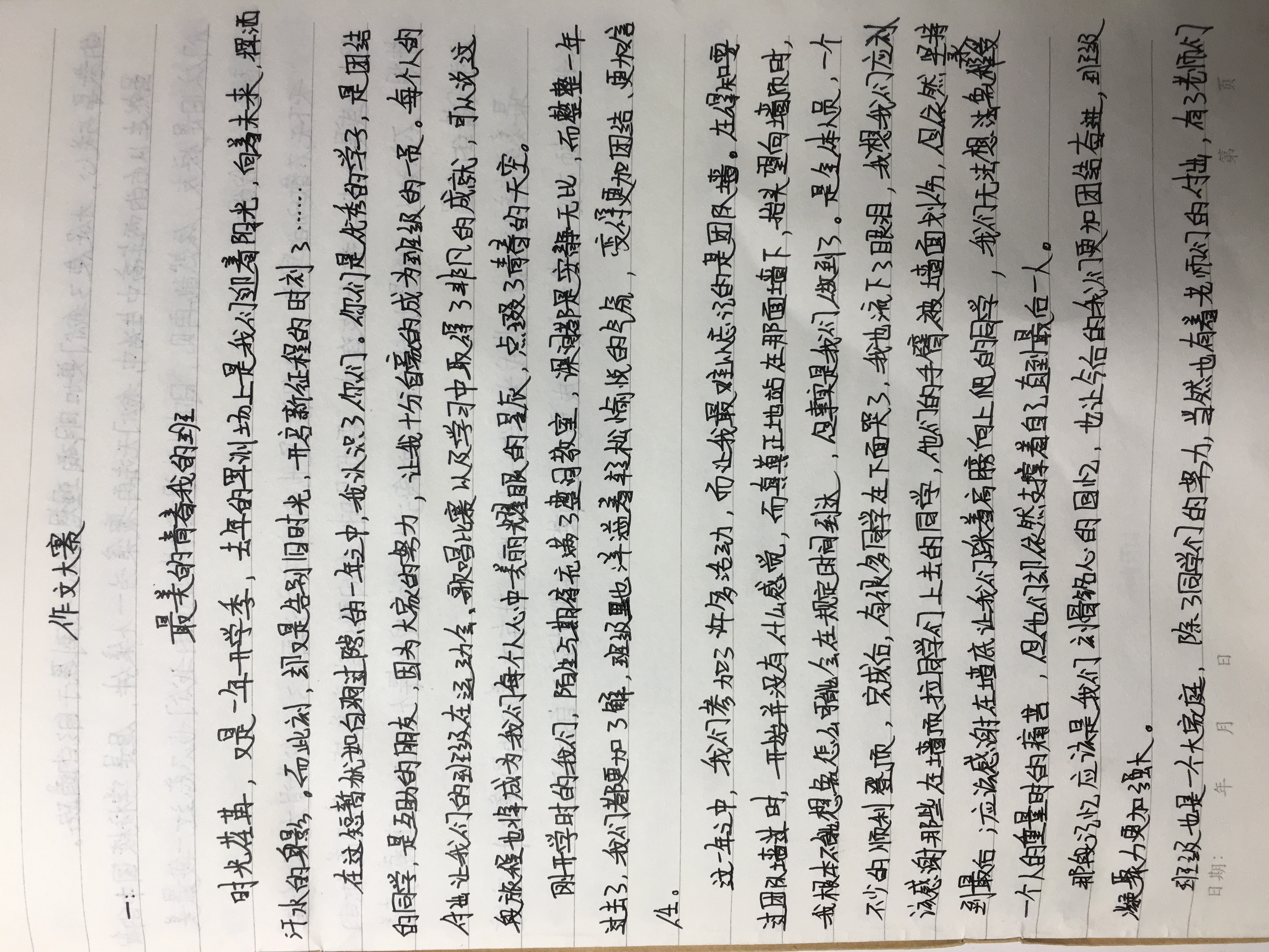 最美的青春我的班 热732 类别:记叙 发表时间:2019-08-23 16:31 已有 733 次阅读 指导老师:陈伟贞 所属学校:郑州市第十九中学