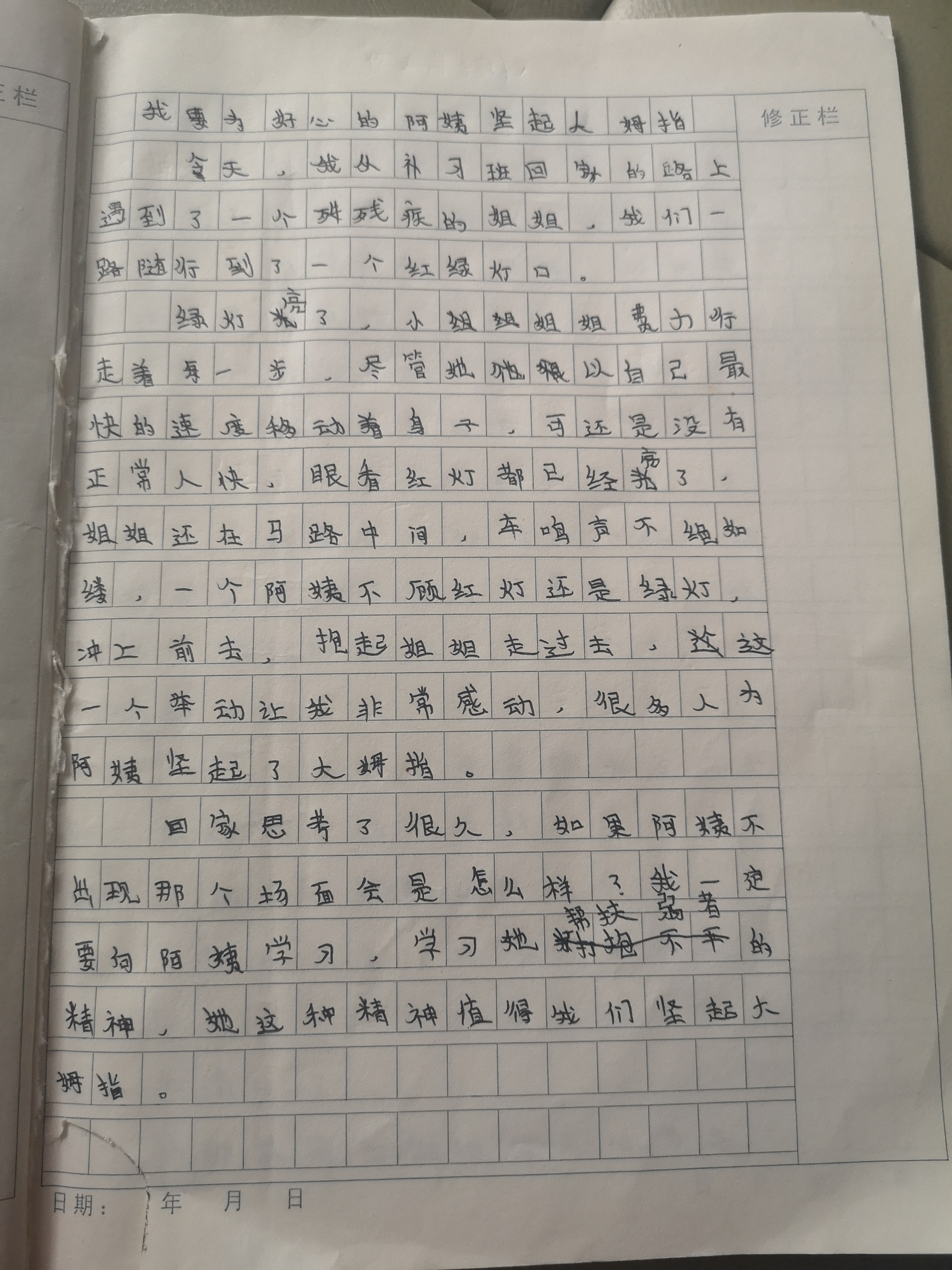 我想为好心的阿姨竖起大拇指 热186 类别:叙事 发表时间:2020-10-11 17:41 已有 187 次阅读 指导老师:郝彩红 所属学校:新密市金凤路小学