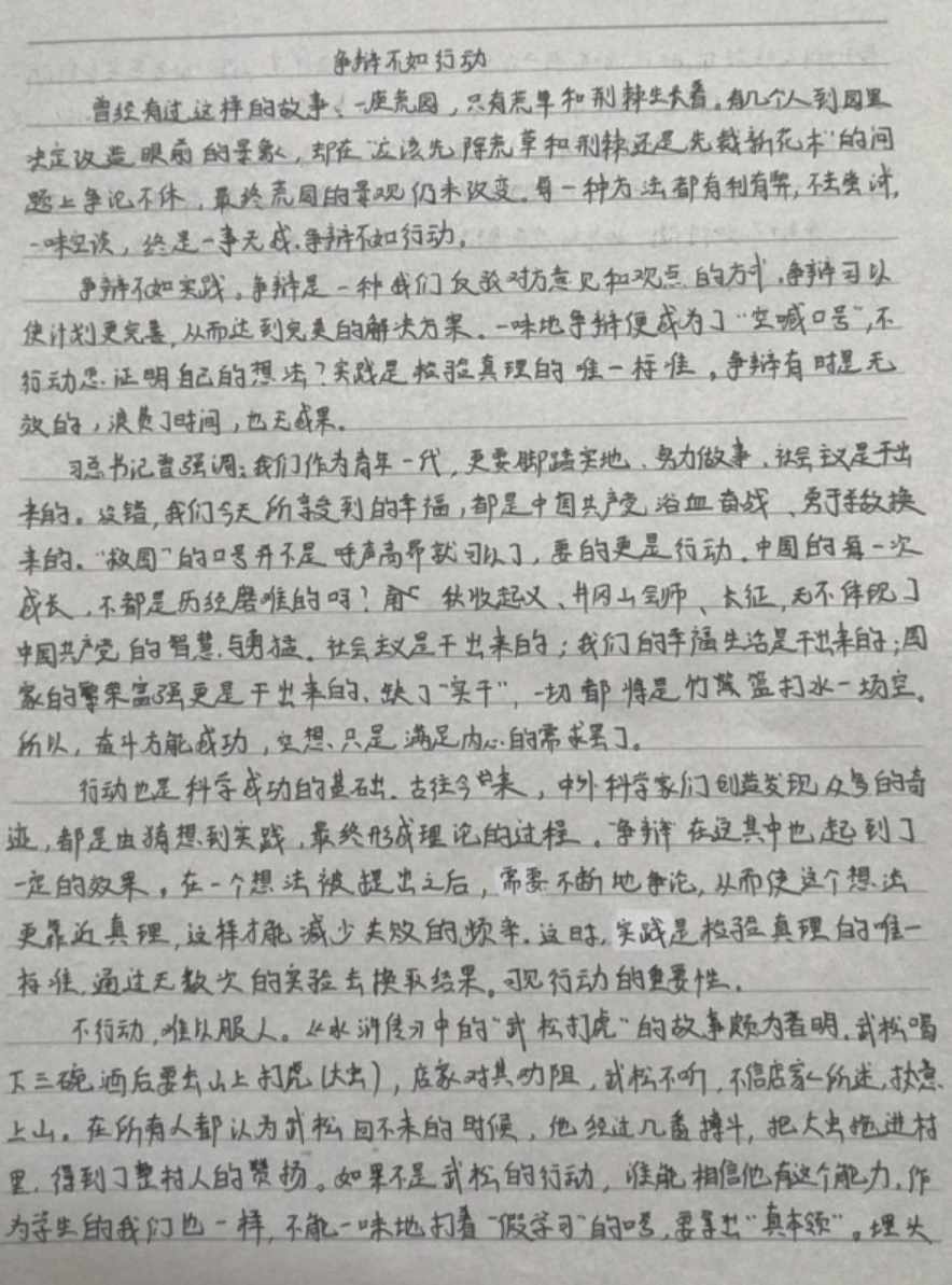 争辩不如行动 热313 类别:议论 发表时间:2019-08-24 21:34 已有 314 次阅读 指导老师:张一帆 所属学校:郑州市第二中学