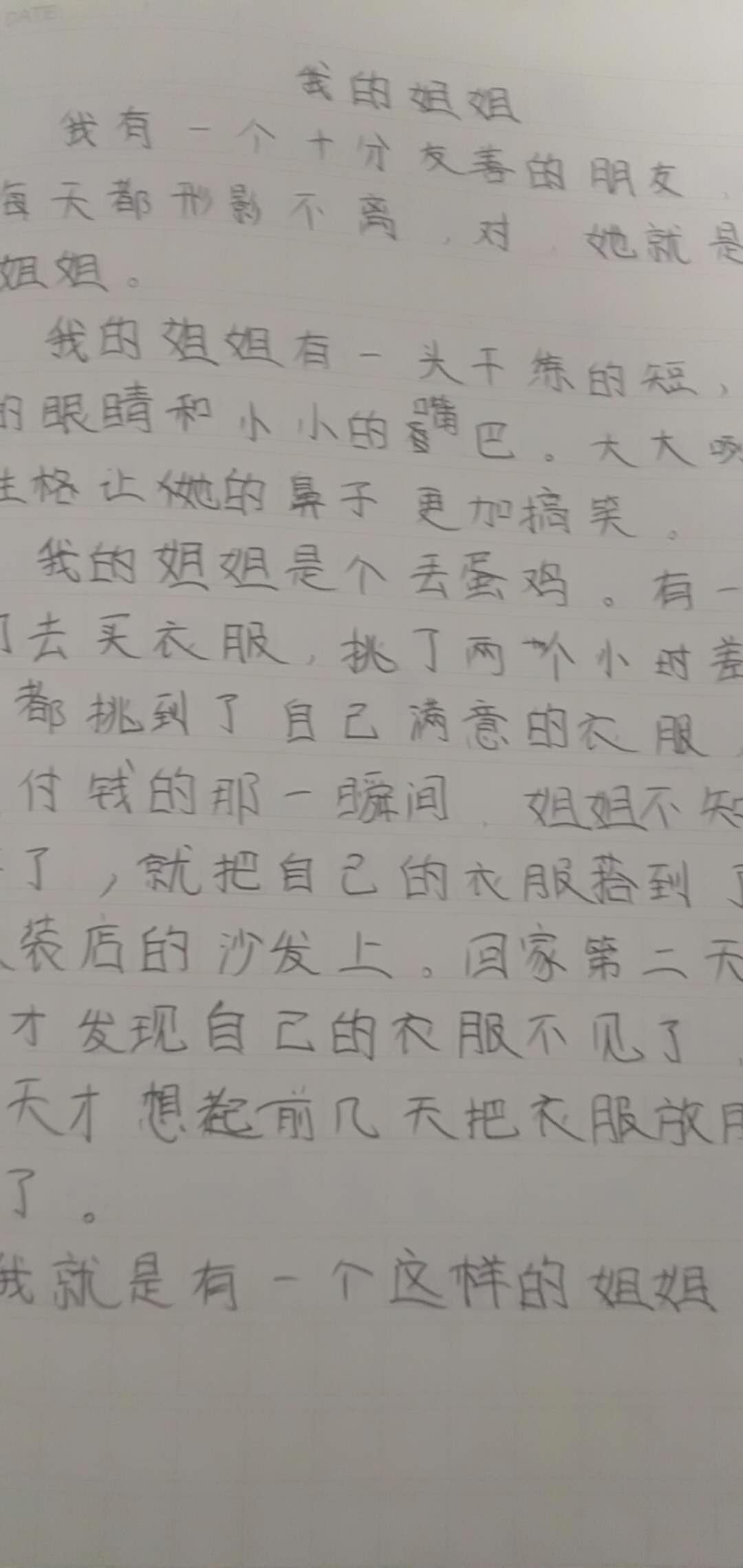 我的姐姐 热350 类别:记叙 发表时间:2020-08-30 21:14 已有 351 次阅读 指导老师:无 所属学校:金水区纬五路第一小学