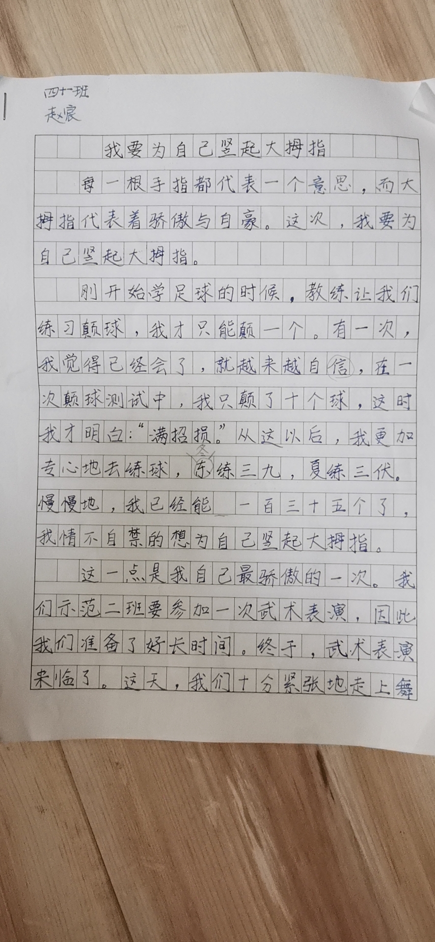 我要为自己竖起大拇指 热703 类别:原创 发表时间:2019-08-28 22:03 已有 704 次阅读 指导老师:王珂 所属学校:金水区文化绿城小学