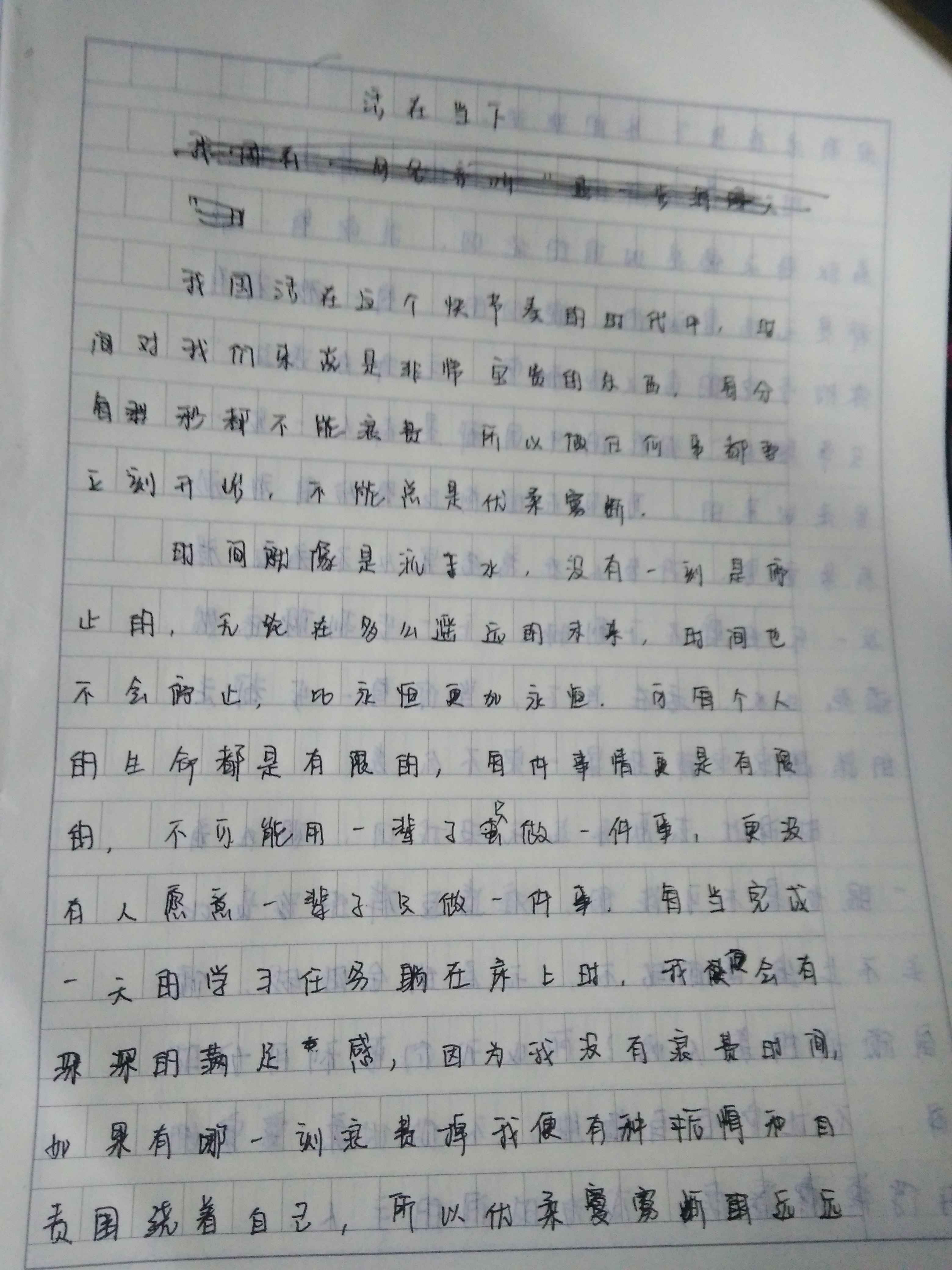 活在当下 热592 类别:原创 发表时间:2019-09-01 18:59 已有 593 次阅读 指导老师:胡孟果 所属学校:郑州市第四十四中学