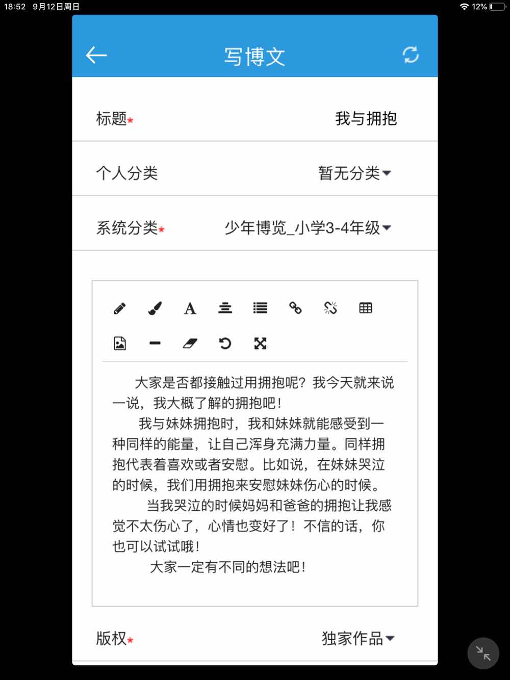 我与拥抱 热445 类别:叙事 发表时间:2021-09-12 18:54 已有 446 次阅读 指导老师:文娟 所属学校:中牟县城东路小学