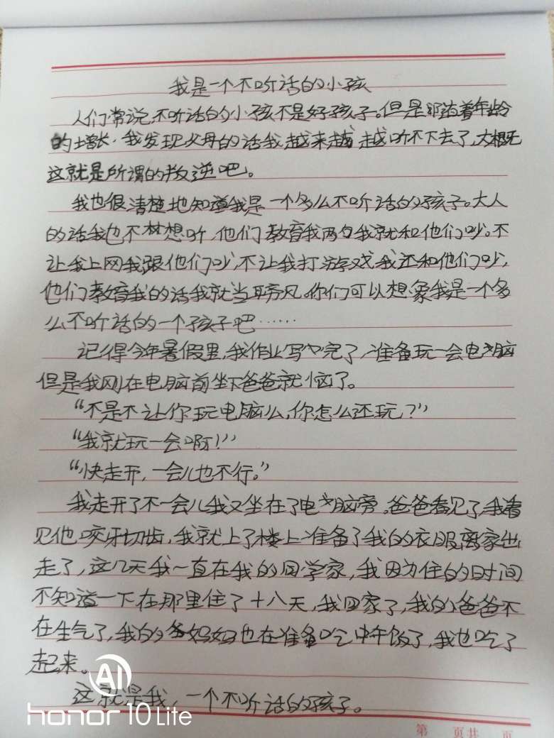 我是一个不听话的小孩儿 热657 类别:叙事 发表时间:2021-08-23 19:17 已有 658 次阅读 指导老师:庆老师 所属学校:中牟县城东路小学