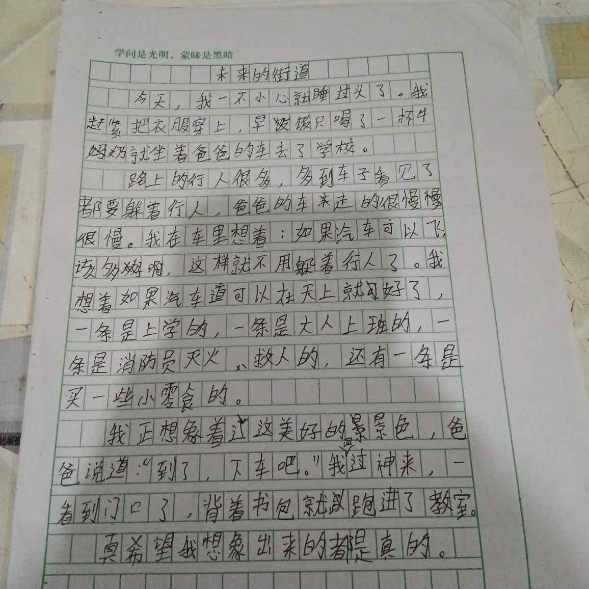 未来的街道 热333 类别:叙事 发表时间:2021-09-12 20:25 已有 334 次阅读 指导老师:孟巧荣 所属学校:中牟县城东路小学