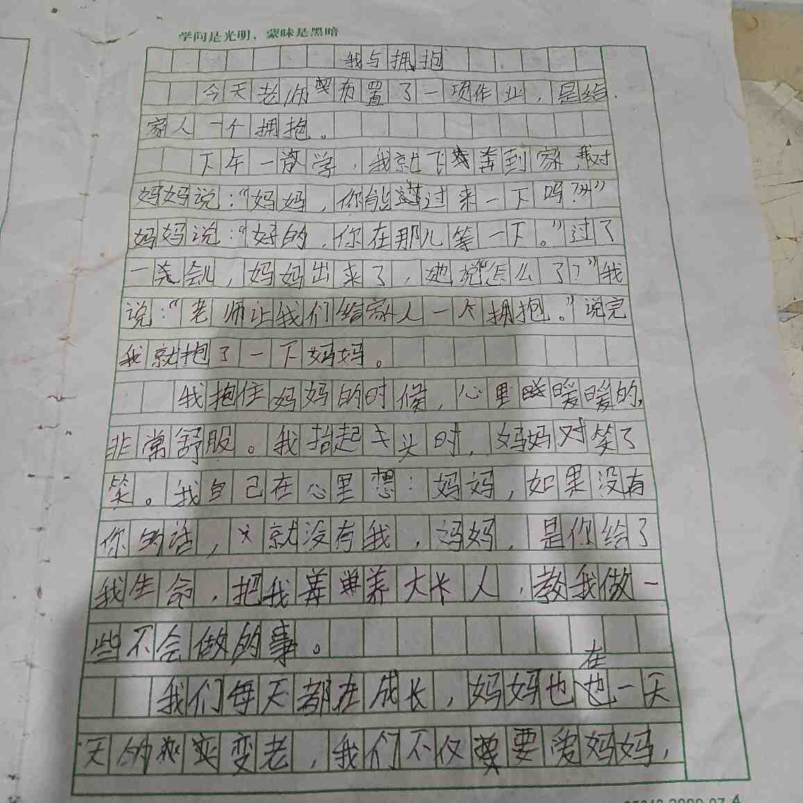 我与拥抱 热343 类别:写人 发表时间:2021-09-12 21:00 已有 344 次阅读 指导老师:孟巧荣 所属学校:中牟县城东路小学