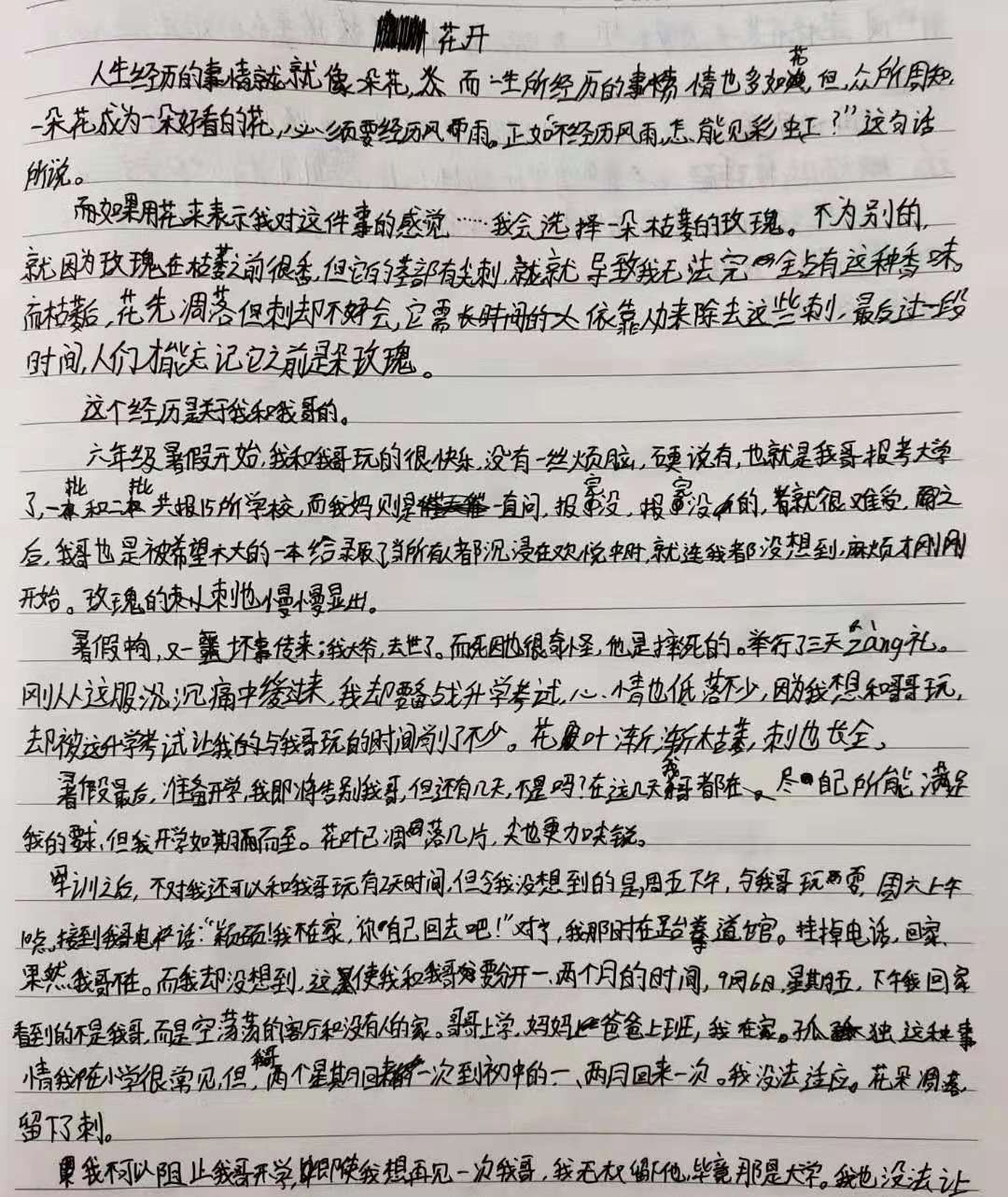 花开 热318 类别:叙事 发表时间:2019-09-13 17:47 已有 319 次阅读 指导老师:李文丽 所属学校:登封新区中强学校
