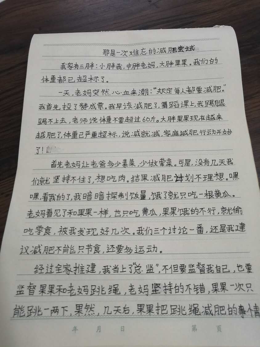 那是一次难忘的减肥尝试 热363 类别:叙事 发表时间:2021-09-14 18:51 已有 364 次阅读 指导老师:庆韵婵 所属学校:中牟县城东路小学