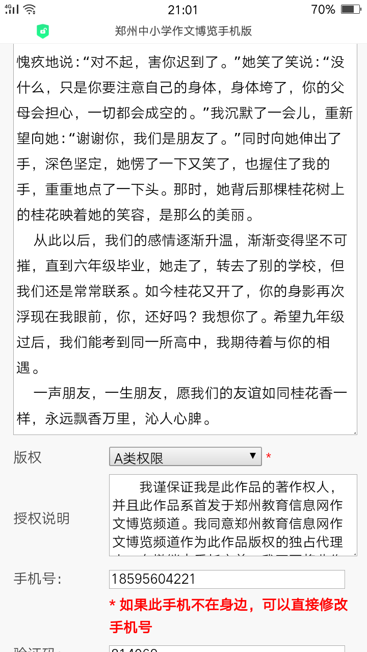 版权说明: A类权限 我谨保证我是此作品的著作权人,并且此作品系首发于郑州教育信息网作文博览频道。我同意郑州教育信息网作文博览频道作为此作品版权的独占代理人。在撤销本委托之前,我不再将此作品投给其他媒体,有关此作品发表和转载等任何事宜,由郑州教育信息网作文博览频道全权负责。未经郑州教育信息网作文博览频道转授权,其他媒体一律不得转载。 |