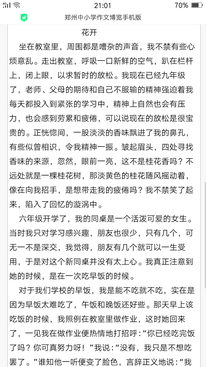 花开 热769 类别:写人 发表时间:2019-09-21 21:12 已有 770 次阅读 指导老师:岳艳艳 所属学校:登封市宣化镇初级中学