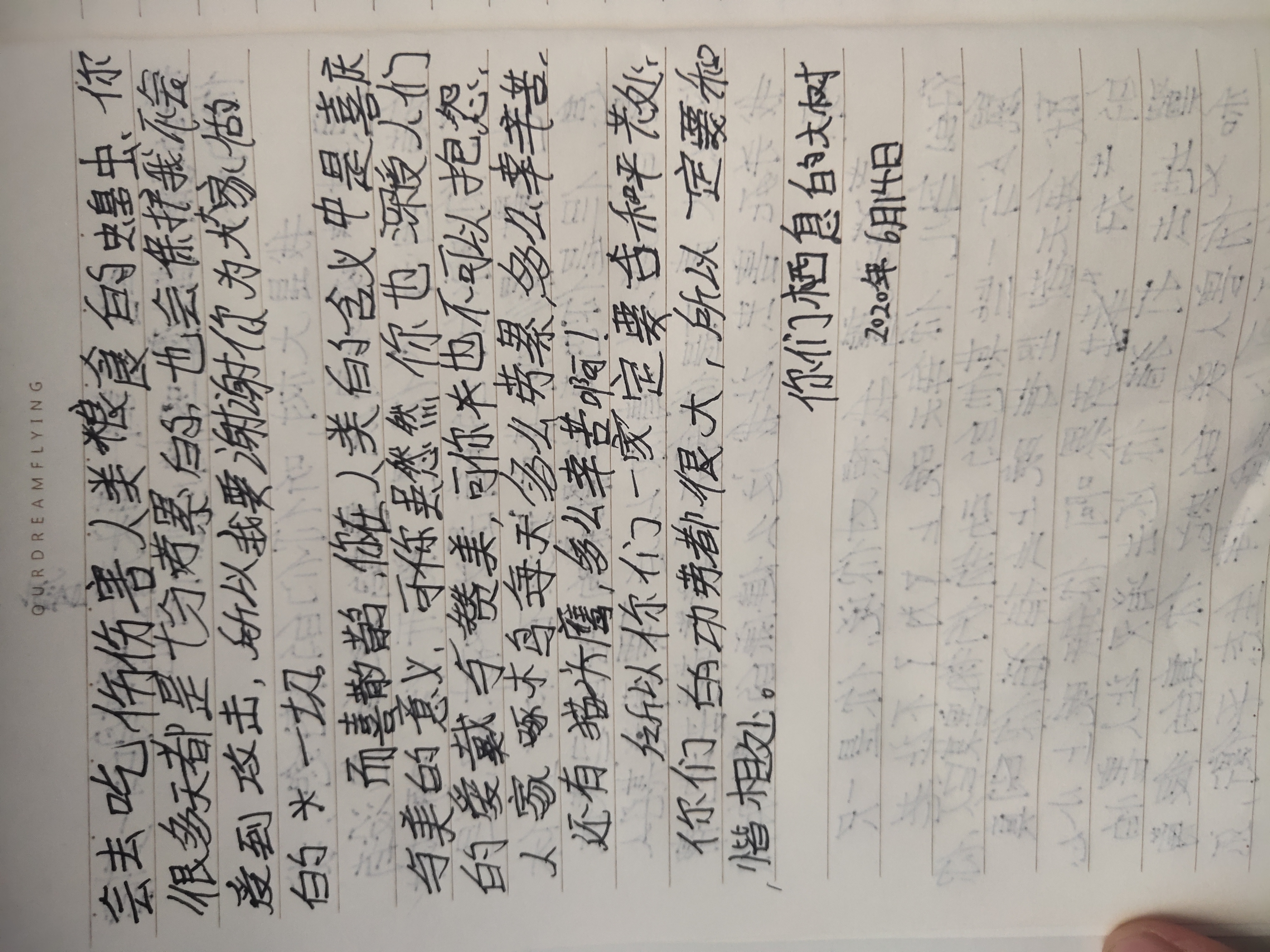 给鸟儿们的一封信 热1045 类别:原创 发表时间:2020-06-14 14:02 已有 1046 次阅读 指导老师:冯江丽 所属学校:新密市实验小学