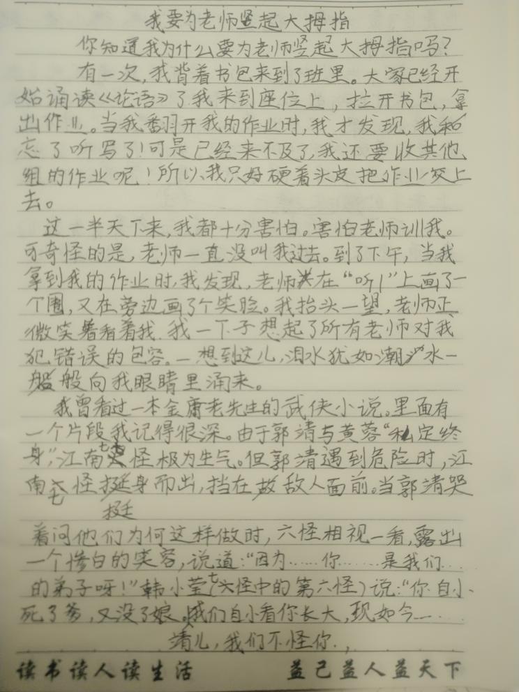 我要为老师竖起大拇指 热694 类别:原创 发表时间:2019-10-14 07:50 已有 695 次阅读 指导老师:孙江楠 所属学校:郑州市中原区淮河路小学