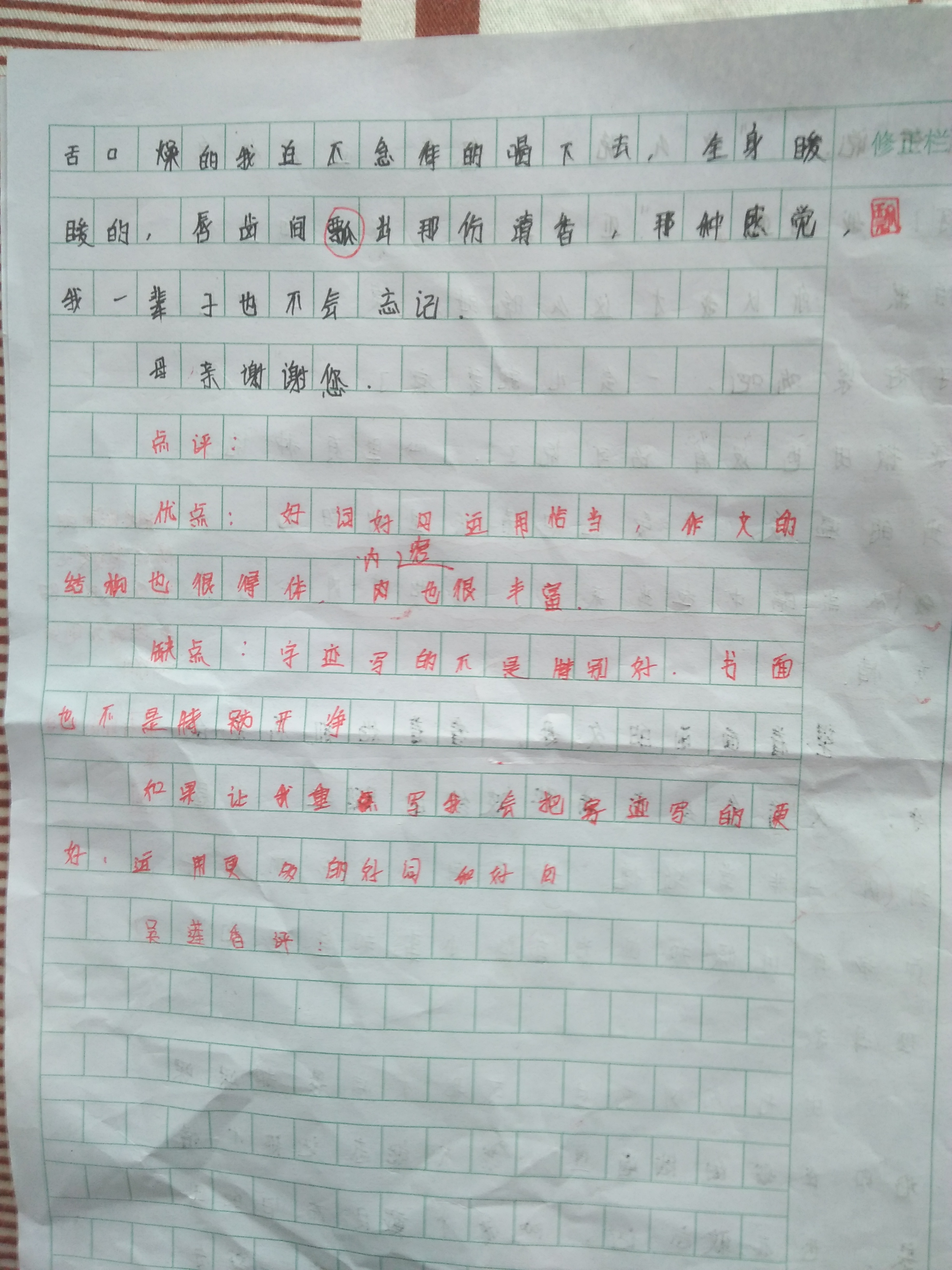 版权说明: A类权限 我谨保证我是此作品的著作权人,并且此作品系首发于郑州教育信息网作文博览频道。我同意郑州教育信息网作文博览频道作为此作品版权的独占代理人。在撤销本委托之前,我不再将此作品投给其他媒体,有关此作品发表和转载等任何事宜,由郑州教育信息网作文博览频道全权负责。未经郑州教育信息网作文博览频道转授权,其他媒体一律不得转载。 |