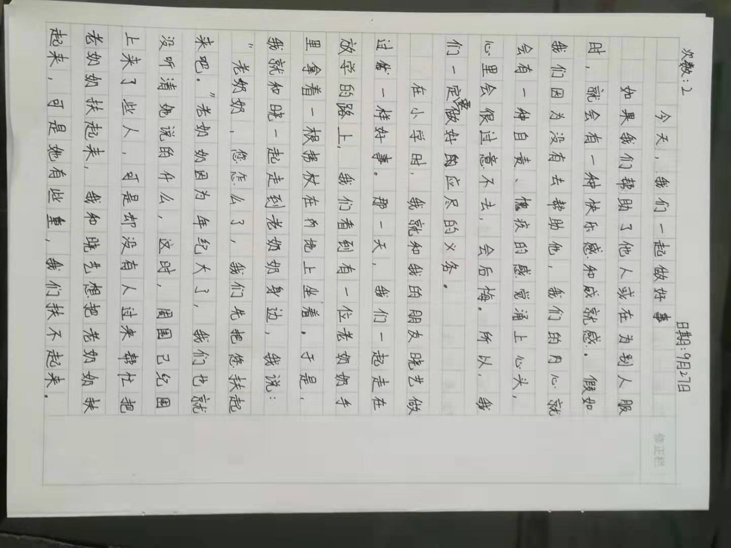 今天,我们一起做好事 热612 类别:写人 发表时间:2019-09-28 11:15 已有 613 次阅读 指导老师:范振华 所属学校:郑州市第一中学