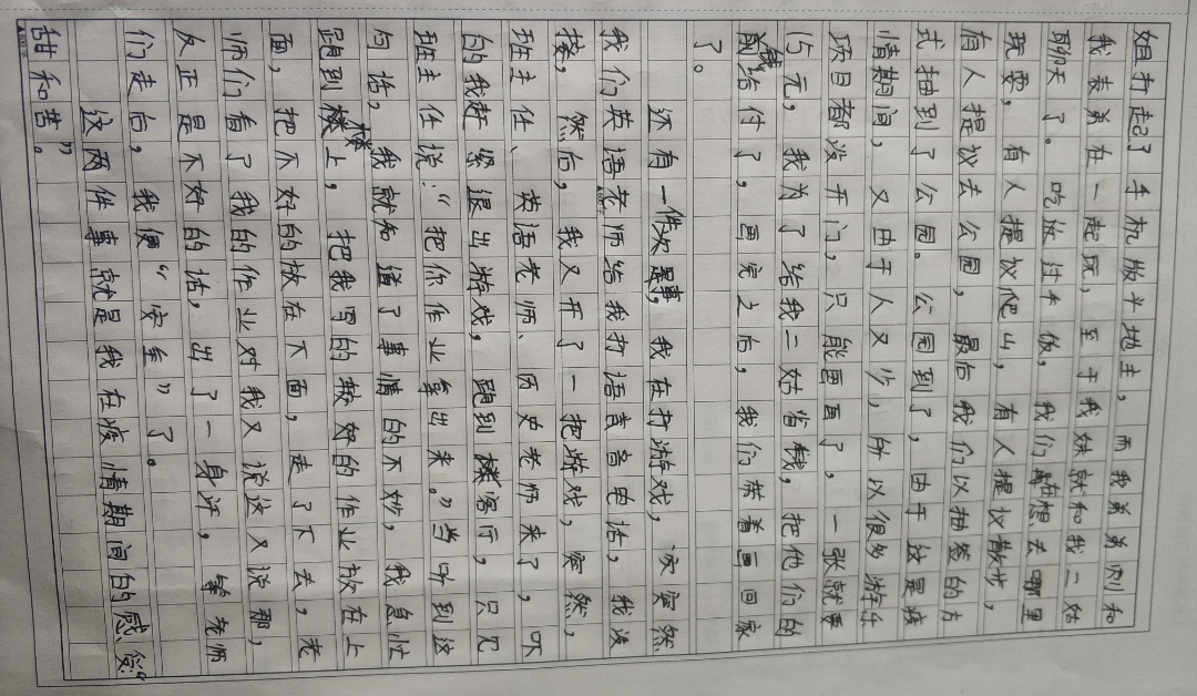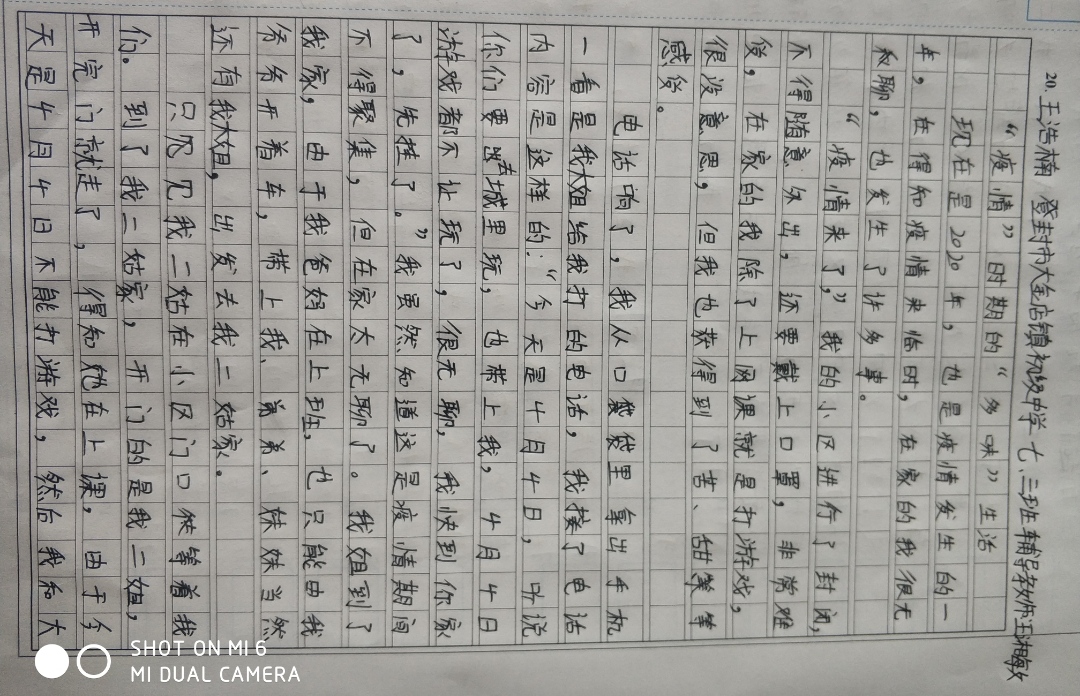 疫情时期的多味生活 热335 类别:叙事 发表时间:2020-05-31 11:19 已有 336 次阅读 指导老师:王湘敏 所属学校:登封市大金店镇第一初级中学