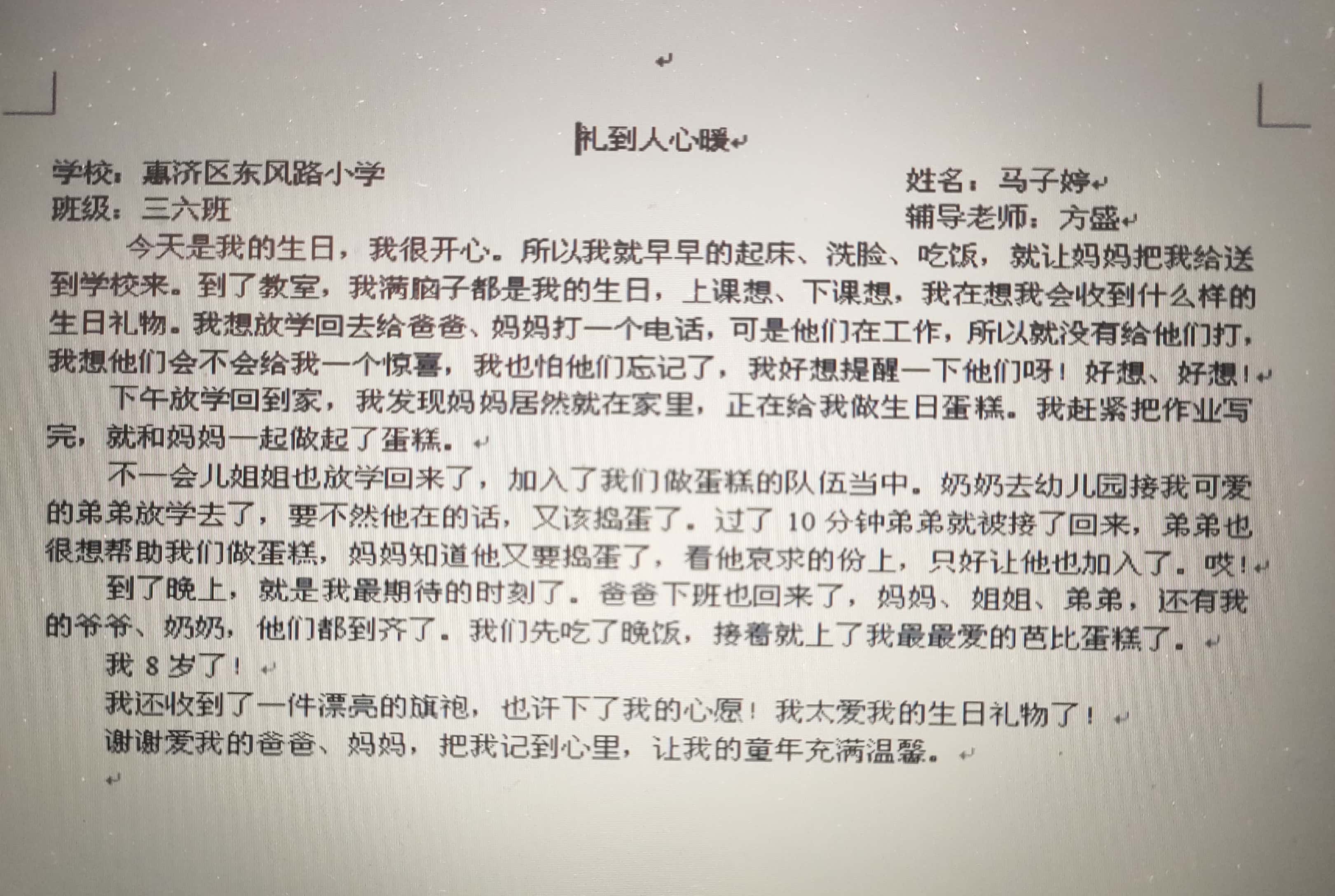 礼到人心暖 热436 类别:叙事 发表时间:2019-10-01 10:30 已有 437 次阅读 指导老师:方胜 所属学校:郑州市惠济区东风路小学