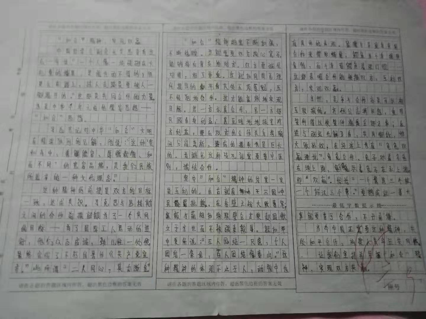 ”和合“精神,实现双赢 热812 类别:议论 发表时间:2019-10-06 11:38 已有 813 次阅读 指导老师:张鹏 所属学校:荥阳市第三高级中学
