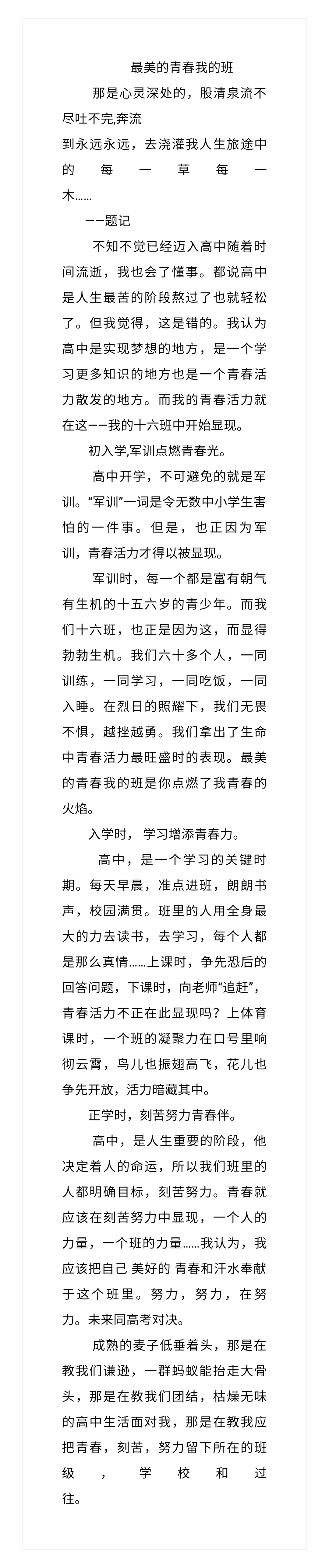 最美的青春我的班 热720 类别:记叙 发表时间:2019-10-05 13:48 已有 721 次阅读 指导老师:上官建敏 所属学校:荥阳市实验高级中学