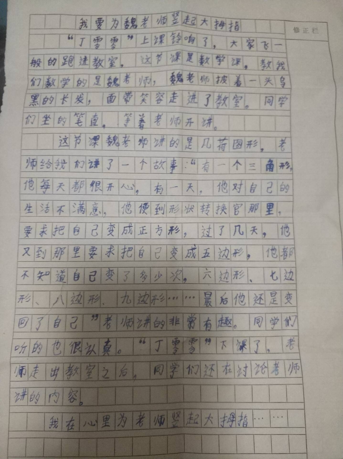 我要为魏老师竖起大拇指 热196 类别:写人 发表时间:2019-10-09 21:49 已有 197 次阅读 指导老师:王永慧 所属学校:郑州市惠济区东风路小学