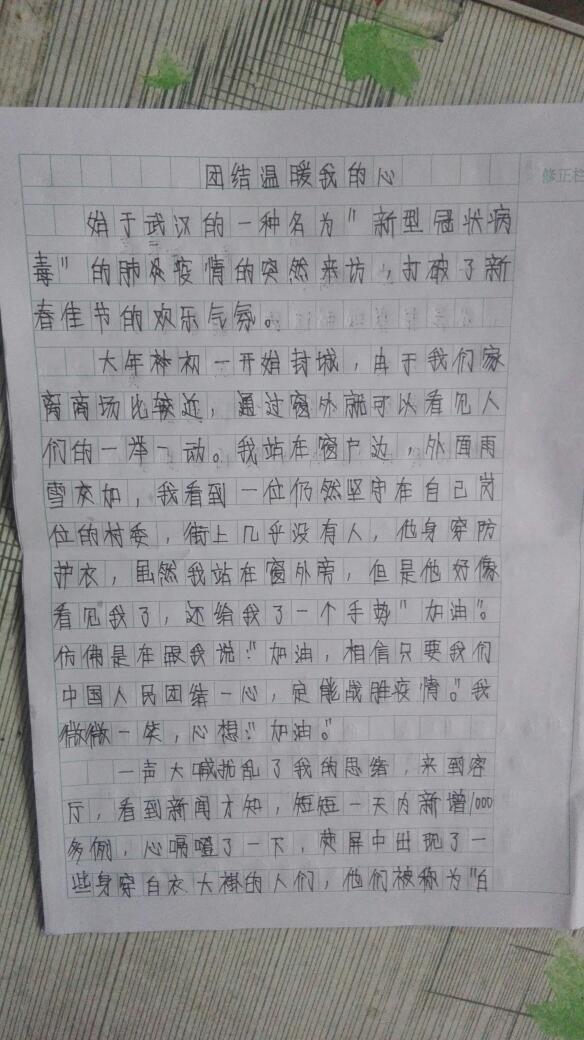 团结温暖我的心 热417 类别:叙事 发表时间:2020-05-30 15:56 已有 418 次阅读 指导老师:王宇丹 所属学校:登封市大金店镇第一初级中学