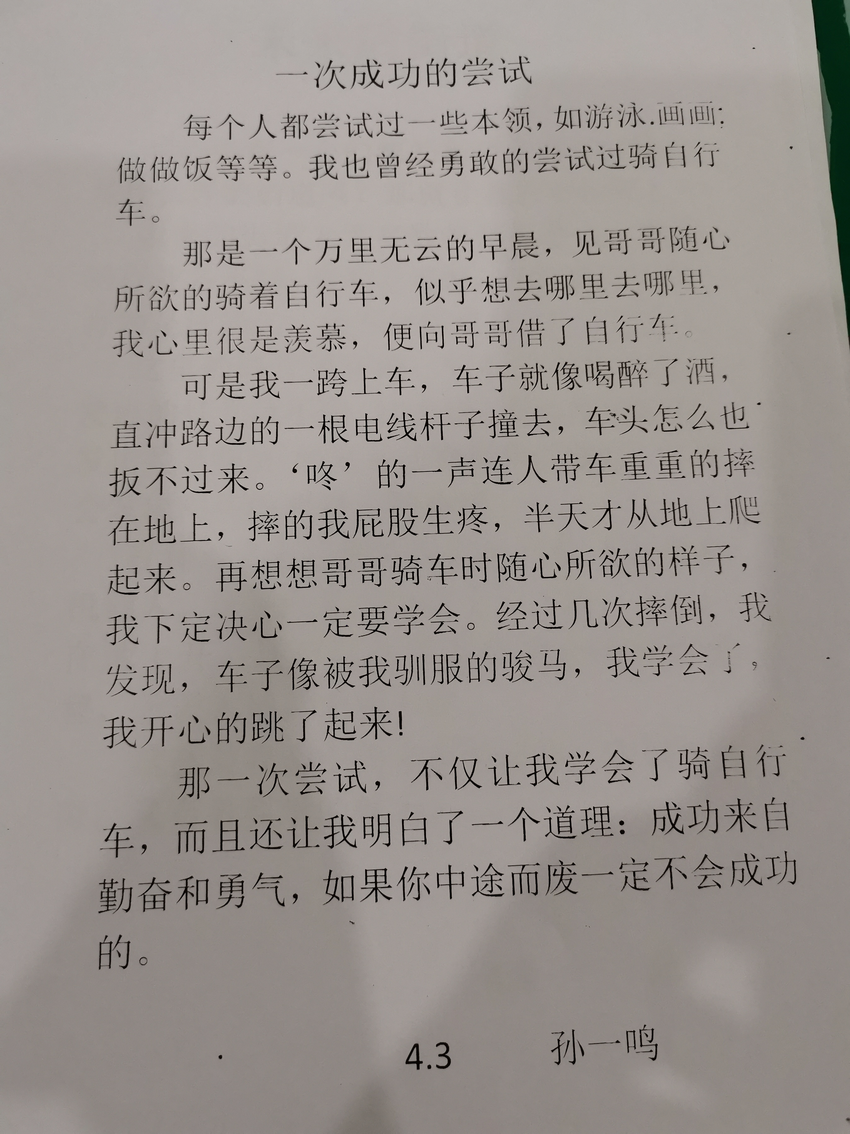 一次成功的尝试 热541 类别:叙事 发表时间:2021-08-03 21:38 已有 542 次阅读 指导老师:王婷 所属学校:新郑市第二实验小学