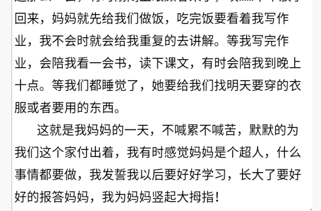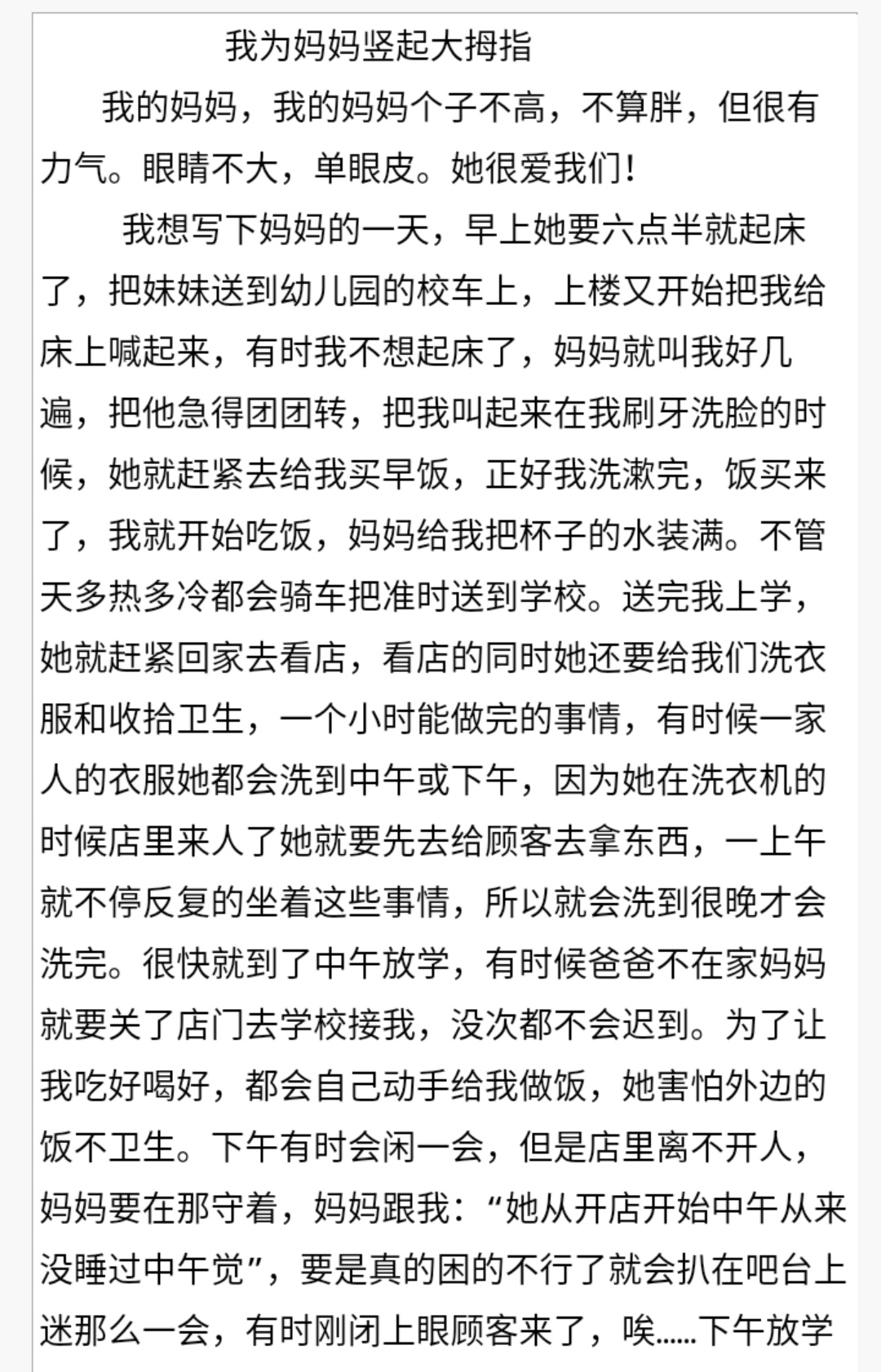 我为妈妈竖起大拇指 热537 类别:原创 发表时间:2019-10-08 20:31 已有 538 次阅读 指导老师:郭丽君 所属学校:新郑市第二实验小学