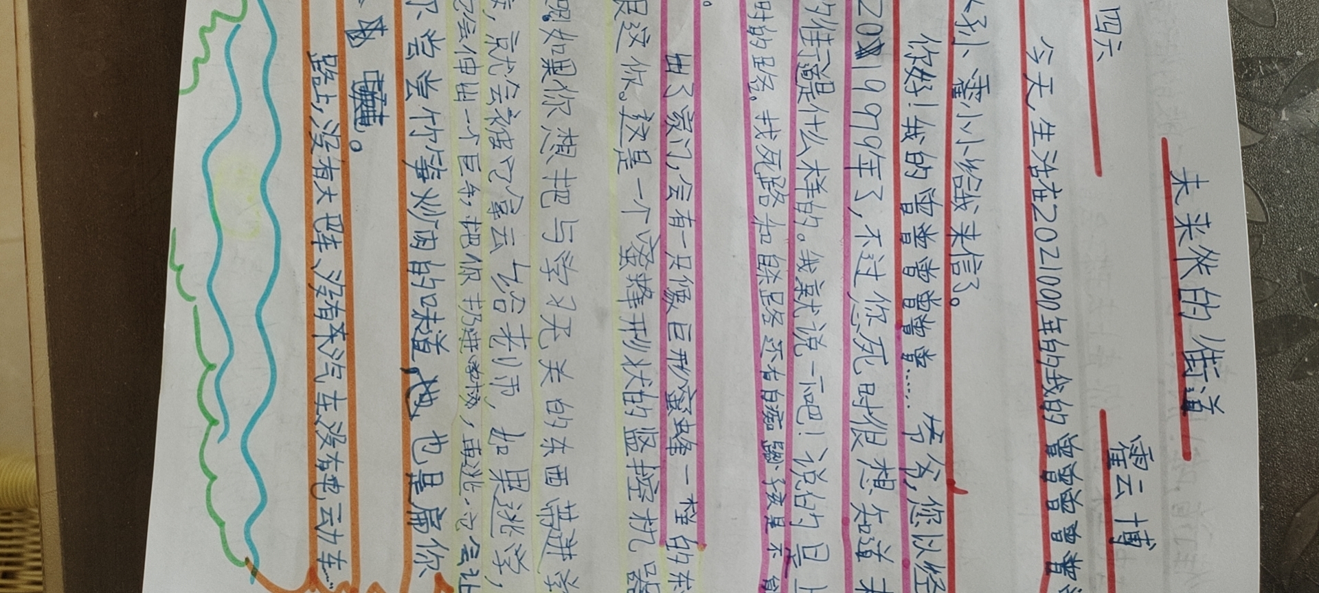 未来的街道 热433 类别:叙事 发表时间:2021-08-03 17:55 已有 434 次阅读 指导老师:赵诗佳 所属学校:新郑市第二实验小学