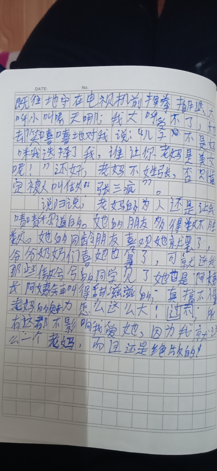 绝版老妈 热534 类别:写人 发表时间:2020-06-18 20:29 已有 535 次阅读 指导老师:赵老师 所属学校:新郑市第二实验小学