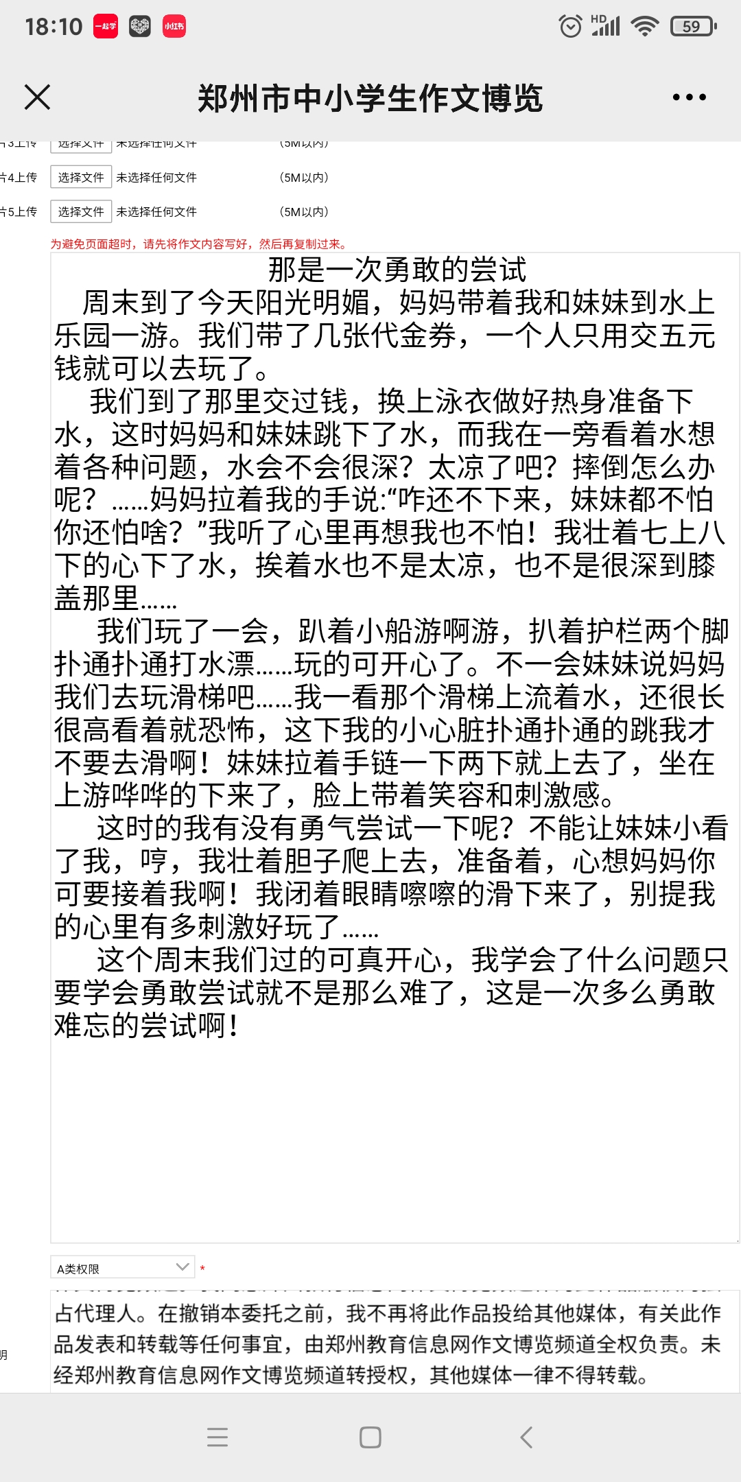 《那是一次勇敢的尝试》 热579 类别:叙事 发表时间:2021-07-10 12:51 已有 580 次阅读 指导老师:赵明阳 所属学校:新郑市实验小学