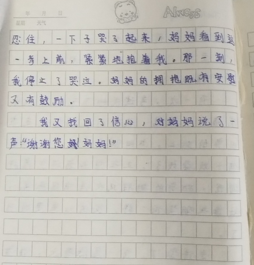 我与拥抱 热500 类别:抒情 发表时间:2021-08-28 17:01 已有 501 次阅读 指导老师:苗新科 所属学校:新郑市第二实验小学