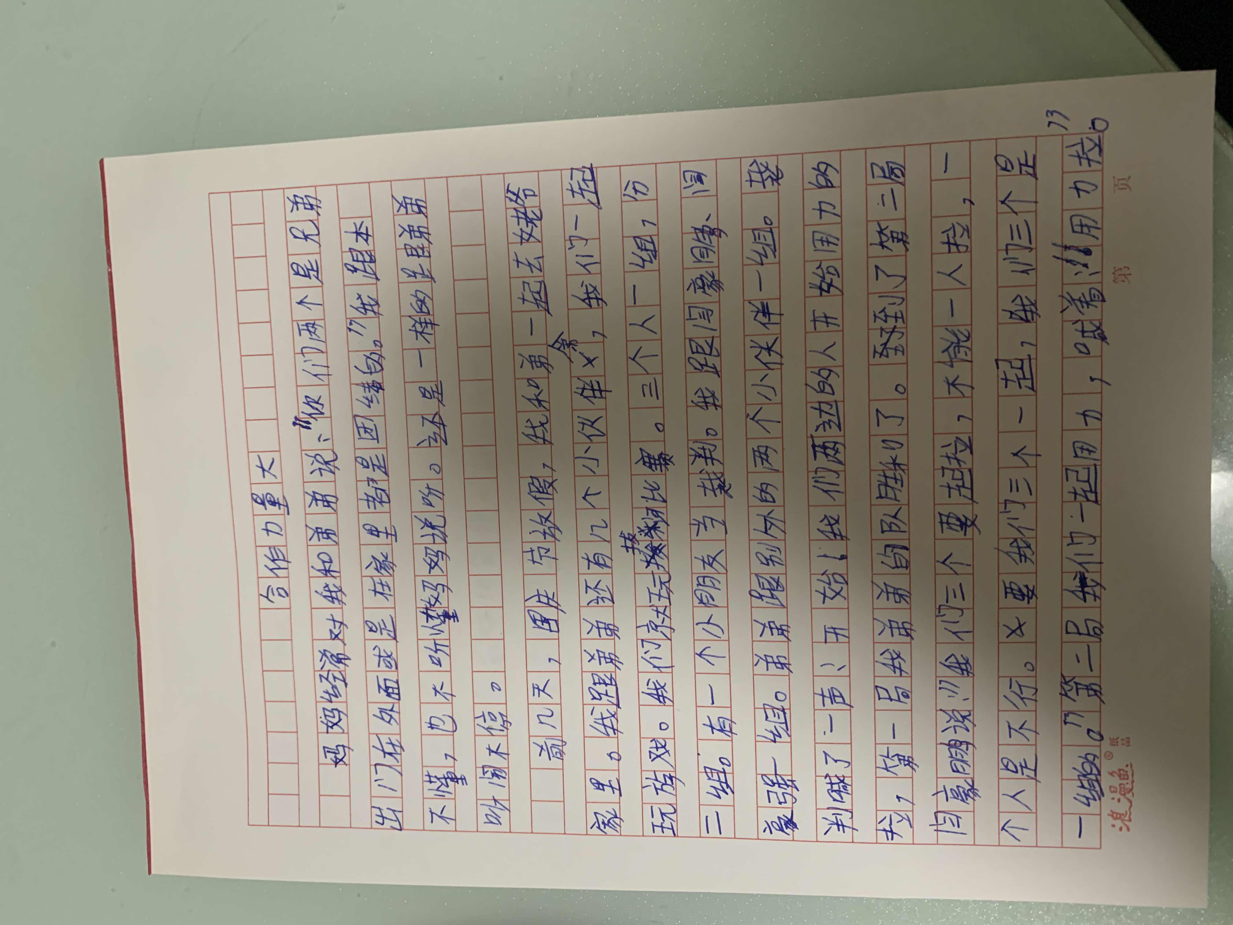 合作力量大 热291 类别:叙事 发表时间:2019-10-08 22:44 已有 292 次阅读 指导老师:张艳荣 所属学校:新郑市第二实验小学