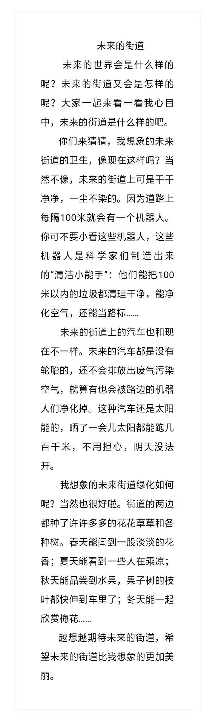 未来的街道 热252 类别:其他 发表时间:2021-08-07 16:24 已有 253 次阅读 指导老师:李享 所属学校:新郑市第二实验小学
