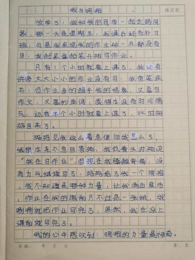 我与拥抱 热264 类别:记叙 发表时间:2021-08-30 22:21 已有 265 次阅读 指导老师:樊晓亚 所属学校:郑州市惠济区东风路小学
