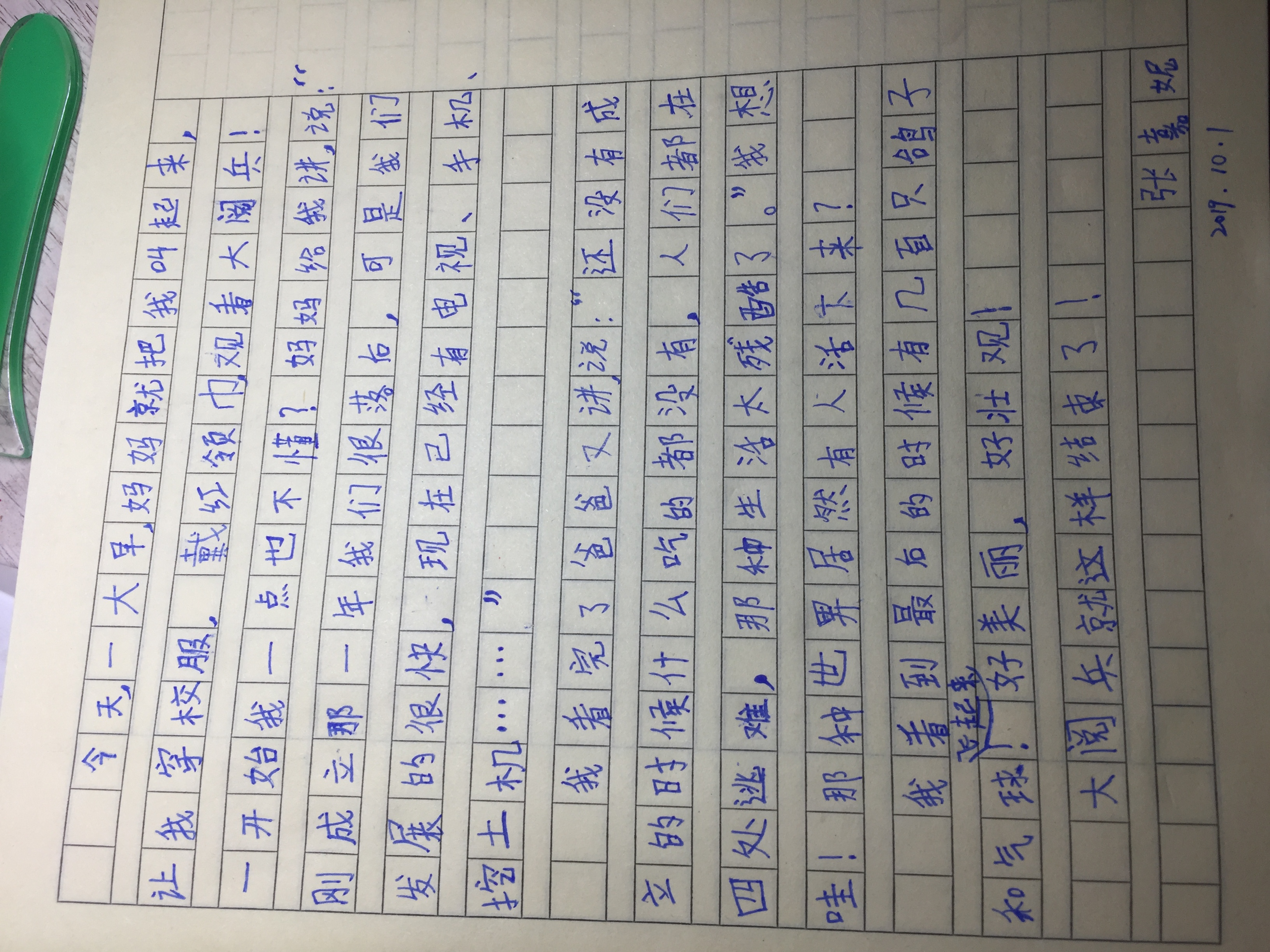 看阅兵有感 热480 类别:叙事 发表时间:2019-10-09 07:33 已有 481 次阅读 指导老师:周玲 所属学校:金水区农科路小学北校区