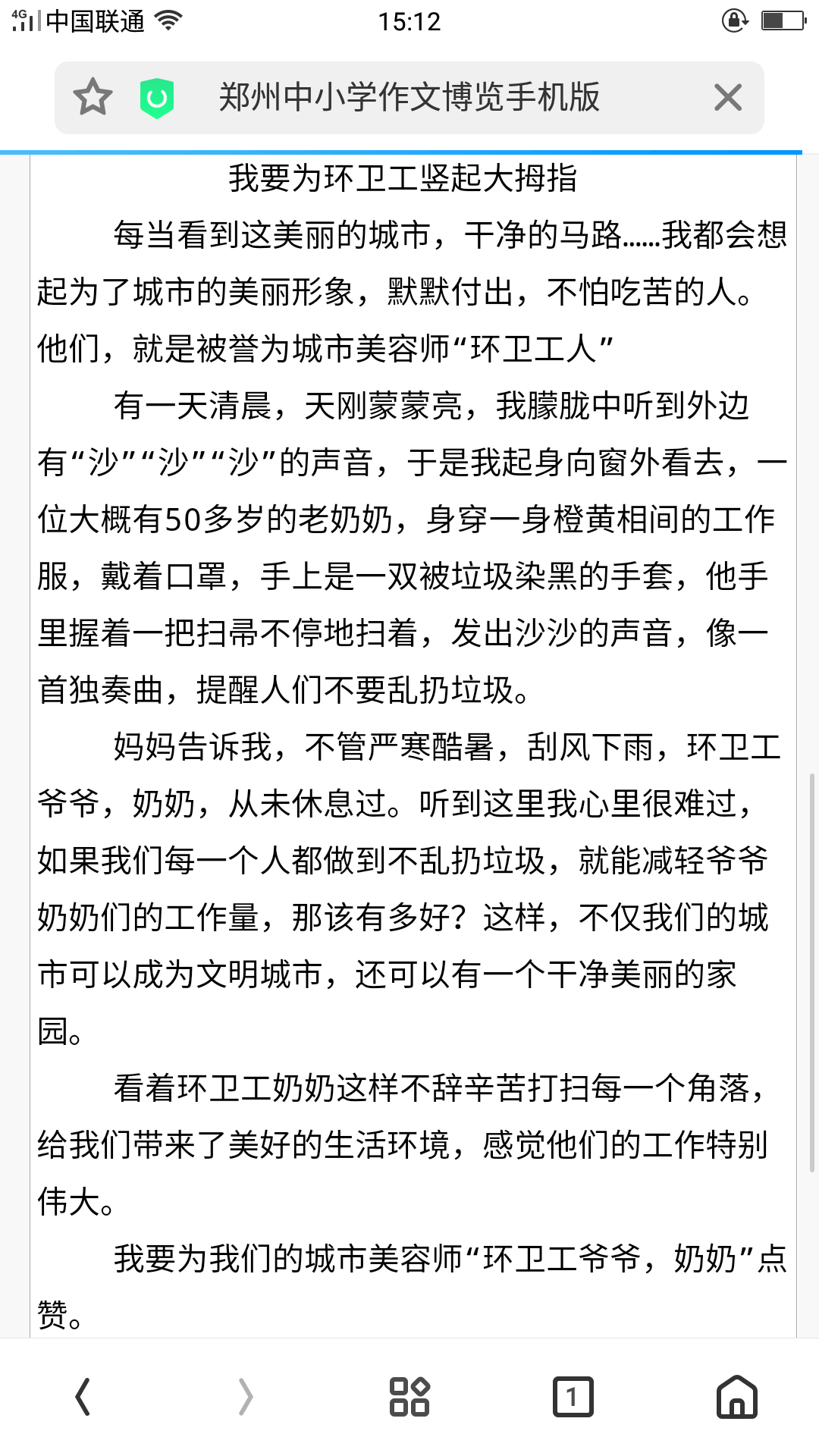 我要为环卫工人竖起大拇指 热890 类别:写人 发表时间:2019-10-09 15:41 已有 891 次阅读 指导老师:邢焕霞 所属学校:新郑市第二实验小学