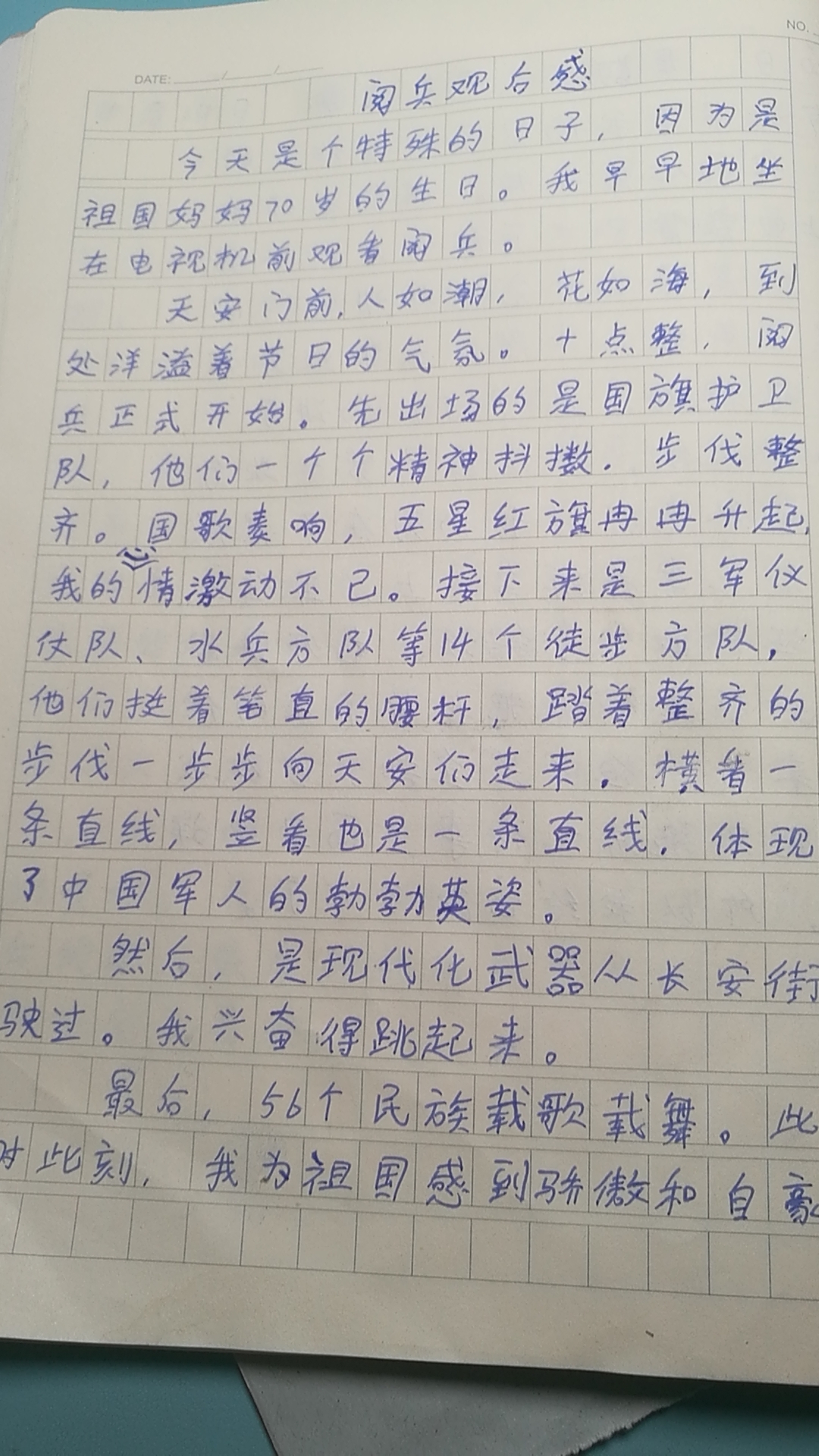 阅兵观后感 热263 类别:其他 发表时间:2019-10-09 18:31 已有 264 次阅读 指导老师:张留勤 所属学校:新郑市第二实验小学