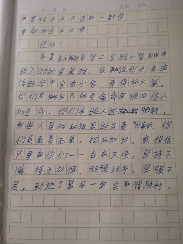 给白衣天使的一封信 热353 类别:原创 发表时间:2020-06-09 21:42 已有 354 次阅读 指导老师:吕明 所属学校:新郑市第二实验小学