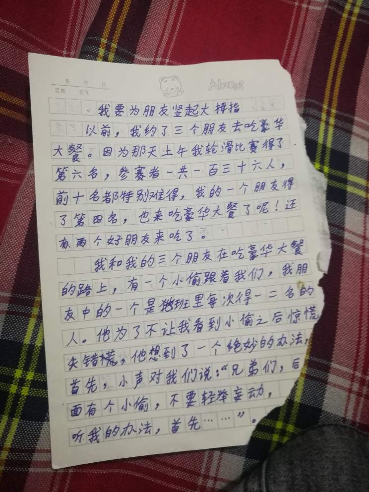我要为朋友竖起大拇指 热351 类别:写人 发表时间:2019-10-12 21:21 已有 352 次阅读 指导老师:刘莉 所属学校:新郑市第二实验小学