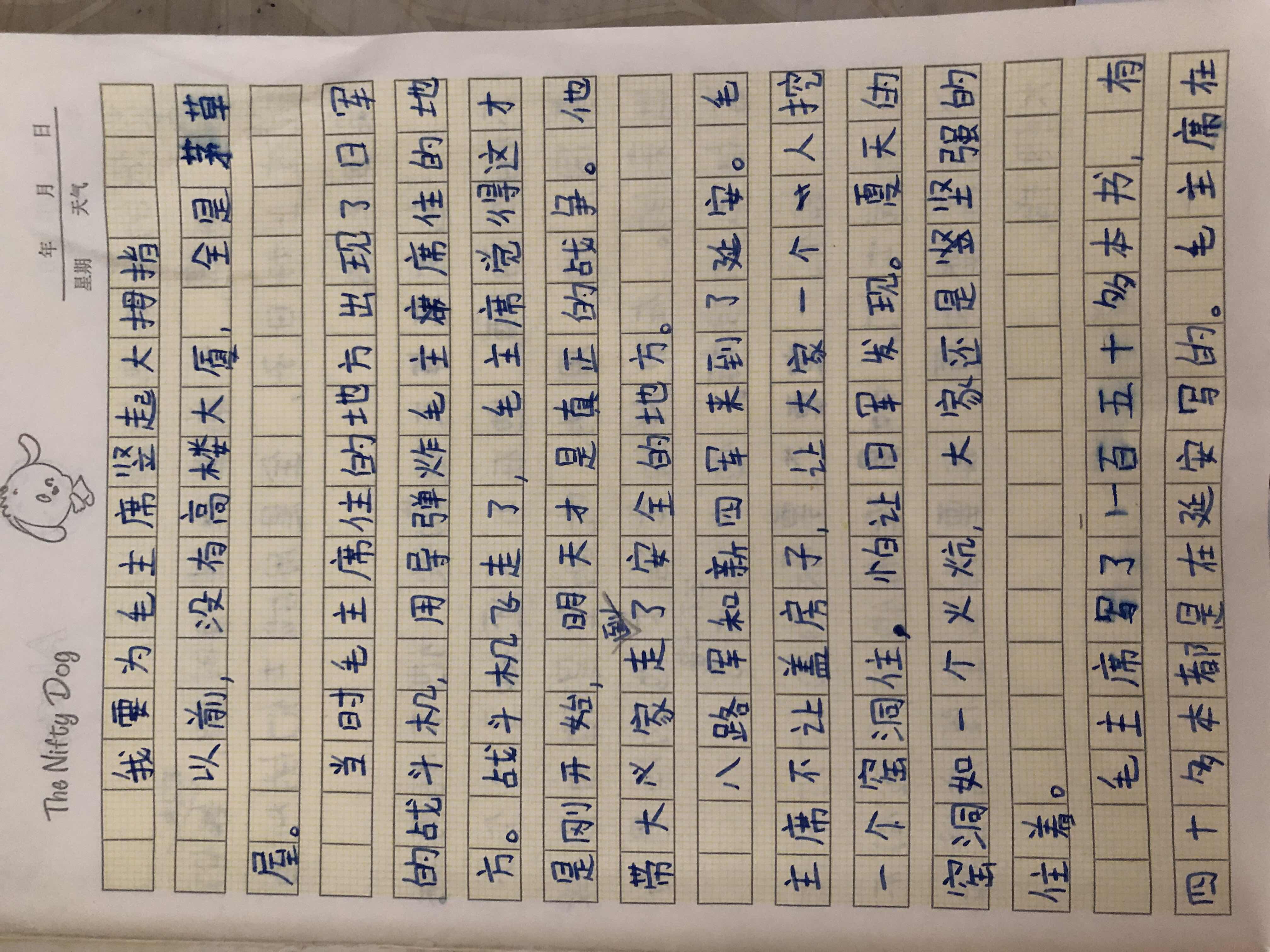 我要为毛主席竖起大拇指 热685 类别:写人 发表时间:2019-10-12 13:22 已有 686 次阅读 指导老师:刘莉 所属学校:新郑市第二实验小学