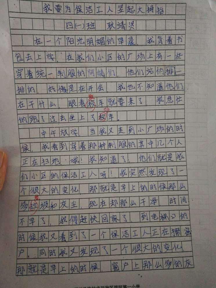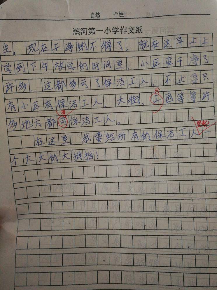 我要为保洁工人竖起大拇指 热348 类别:写人 发表时间:2019-10-13 16:41 已有 349 次阅读 指导老师:张建玲 所属学校:滨河第一小学