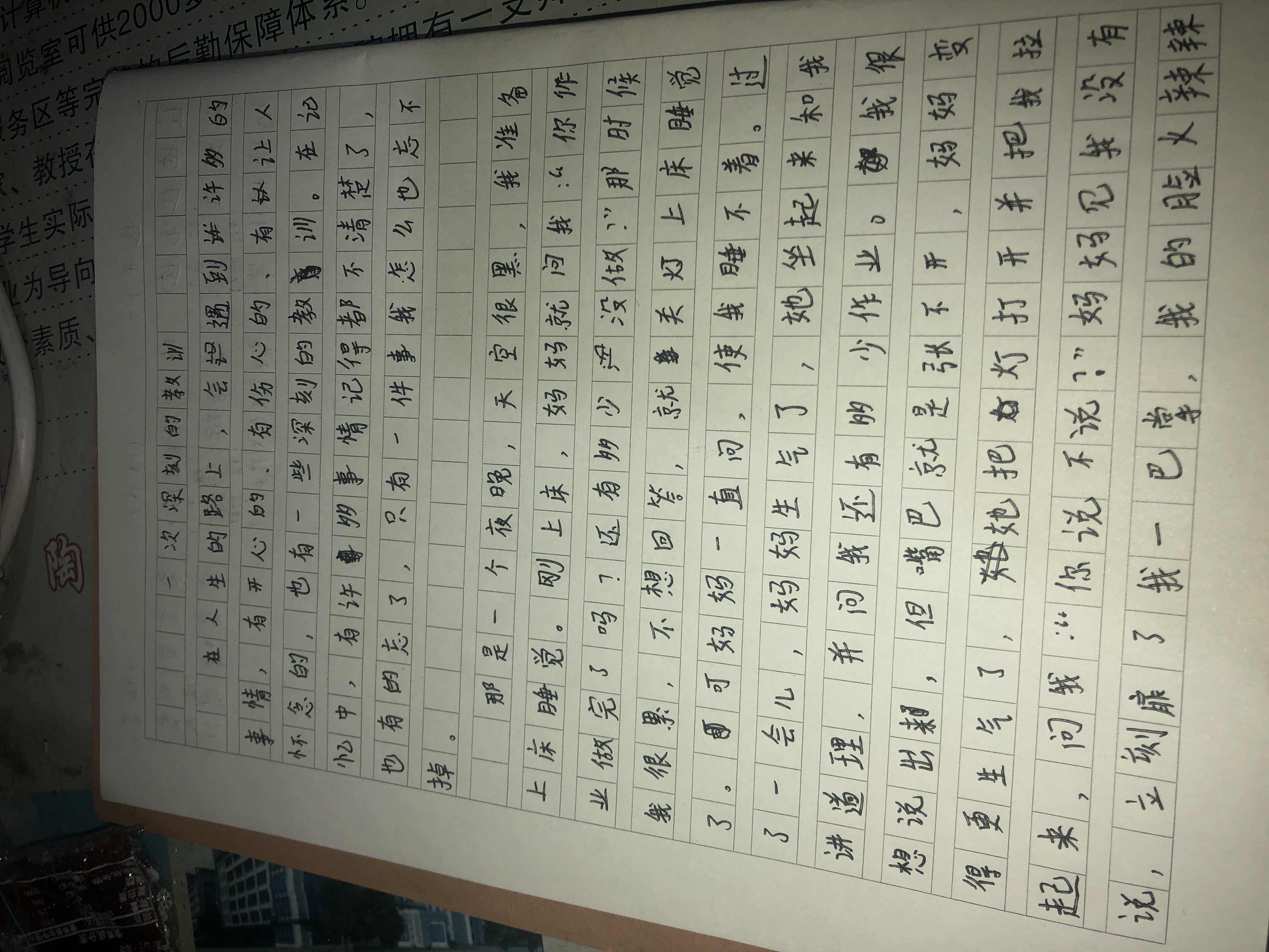一次深刻的教训 热1039 类别:叙事 发表时间:2020-07-11 15:30 已有 1040 次阅读 指导老师:刘海霞 所属学校:西大街青石河学校