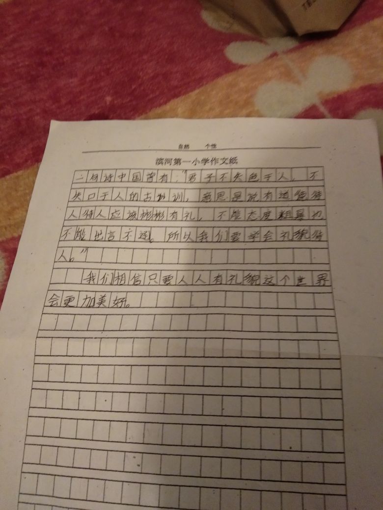 礼到人心暖 热256 类别:叙事 发表时间:2019-10-14 17:32 已有 257 次阅读 指导老师:徐盼盼 所属学校:滨河第一小学