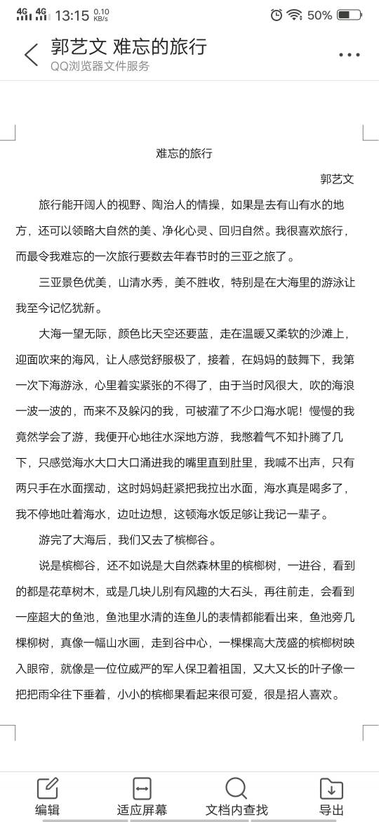 难忘的旅行 热1178 类别:记叙 发表时间:2019-10-14 13:26 已有 1179 次阅读 指导老师:孙同焕 所属学校:滨河第一小学